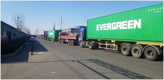2018年7月,友发钢管大门口排队拉货的大车